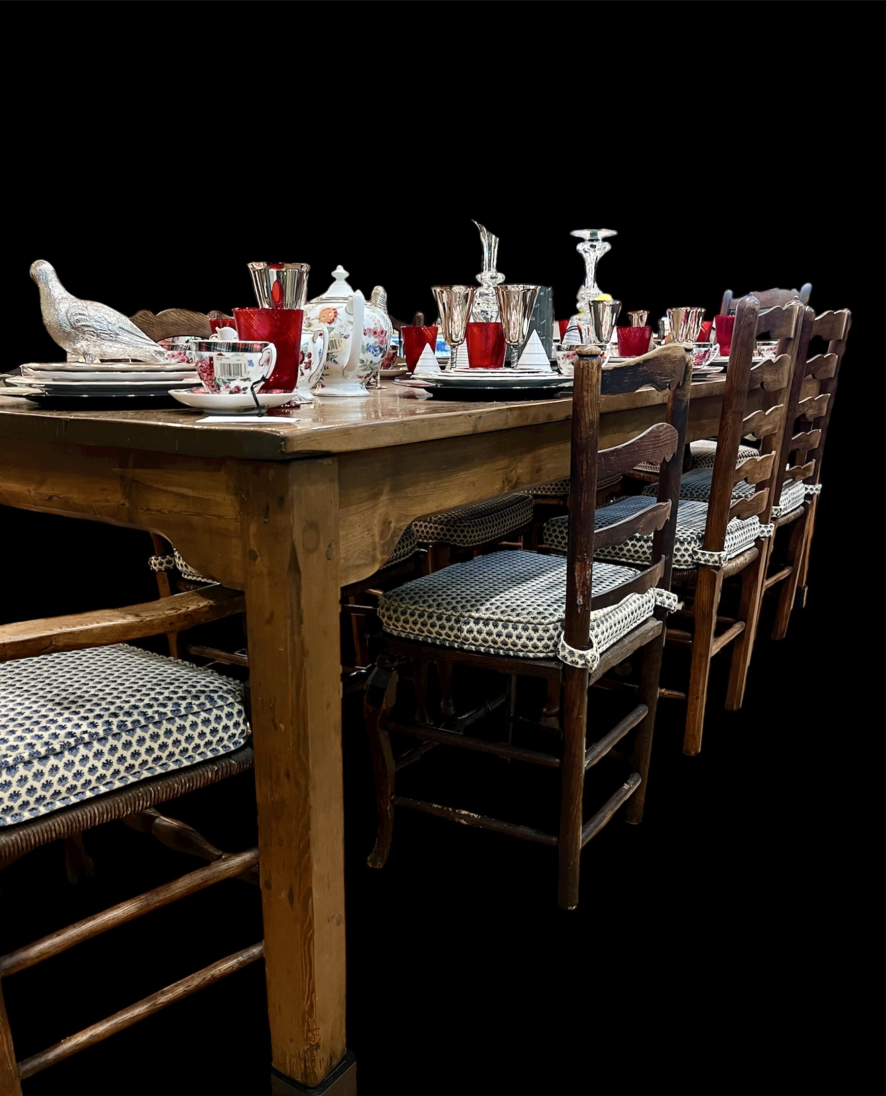 Antique Italian Chestnut Library Table or Dining Table, recently refinished with receipt. Table has a solid top and measures 108″l x 35″d x 30″h.