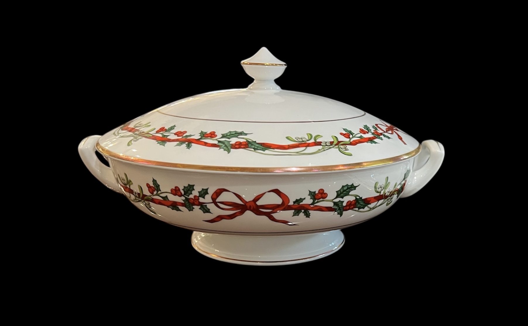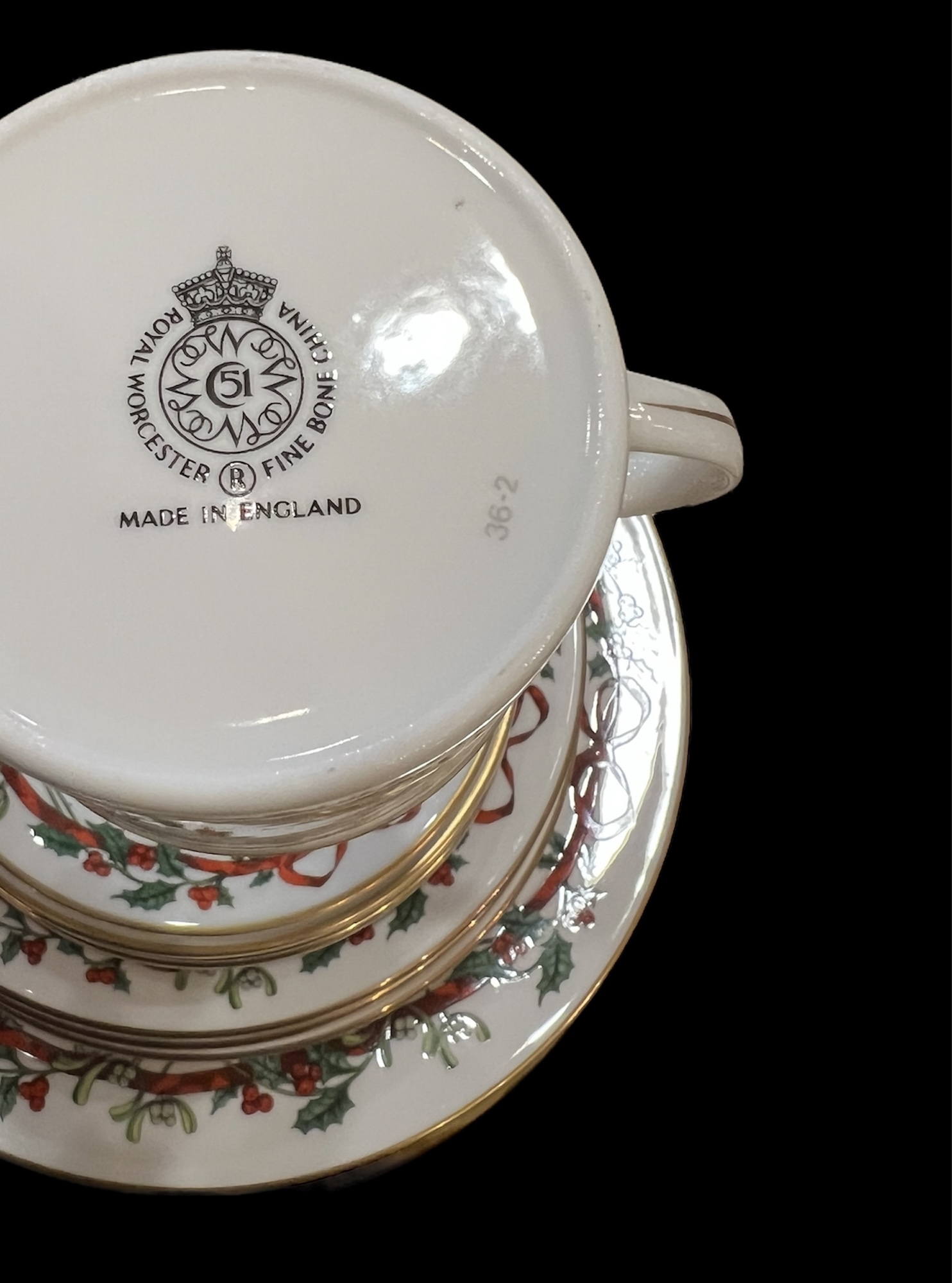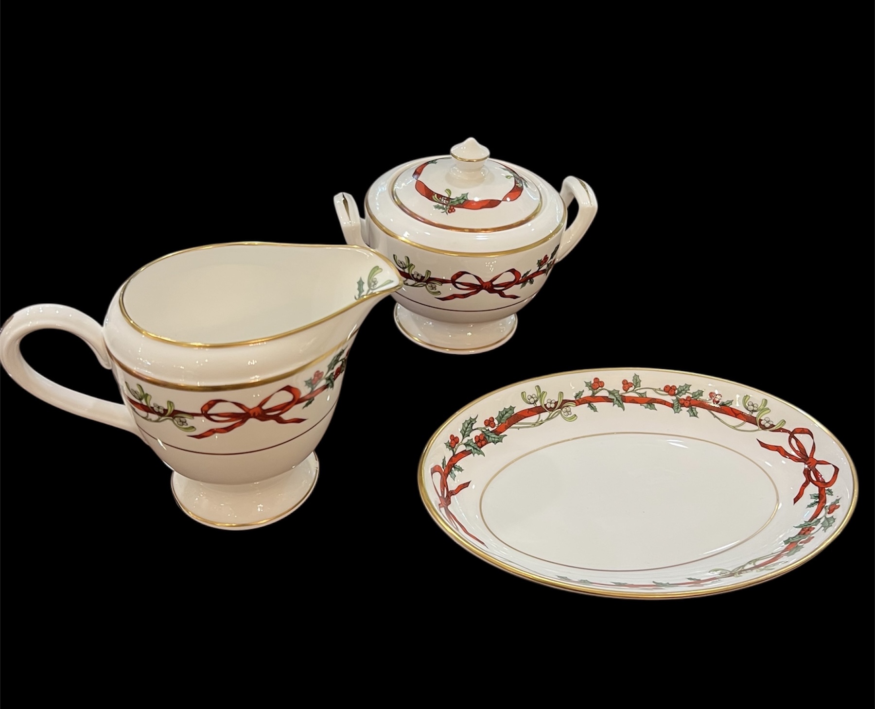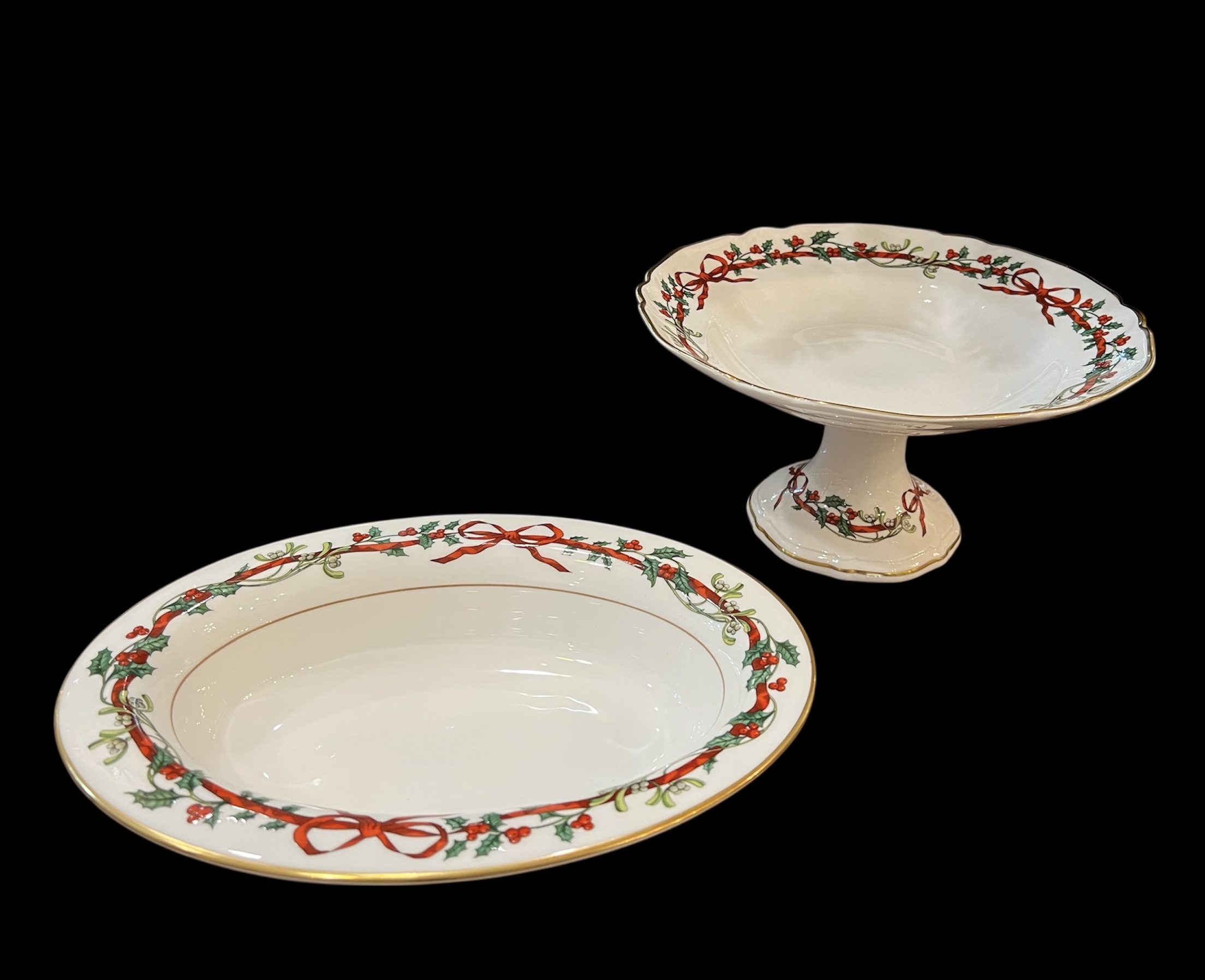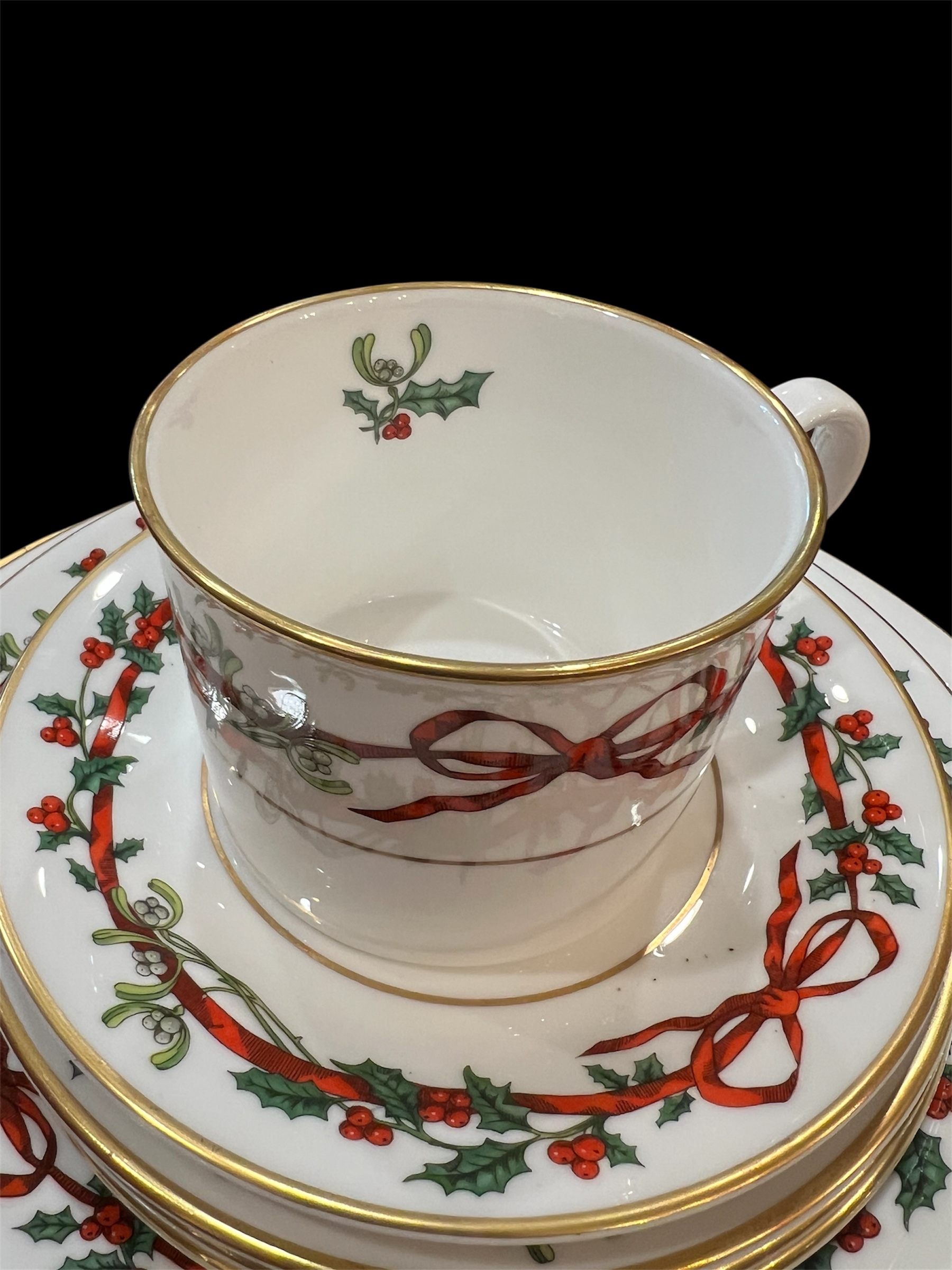 95 piece set Royal Worcester Holly Ribbons Dinnerware features the following items: