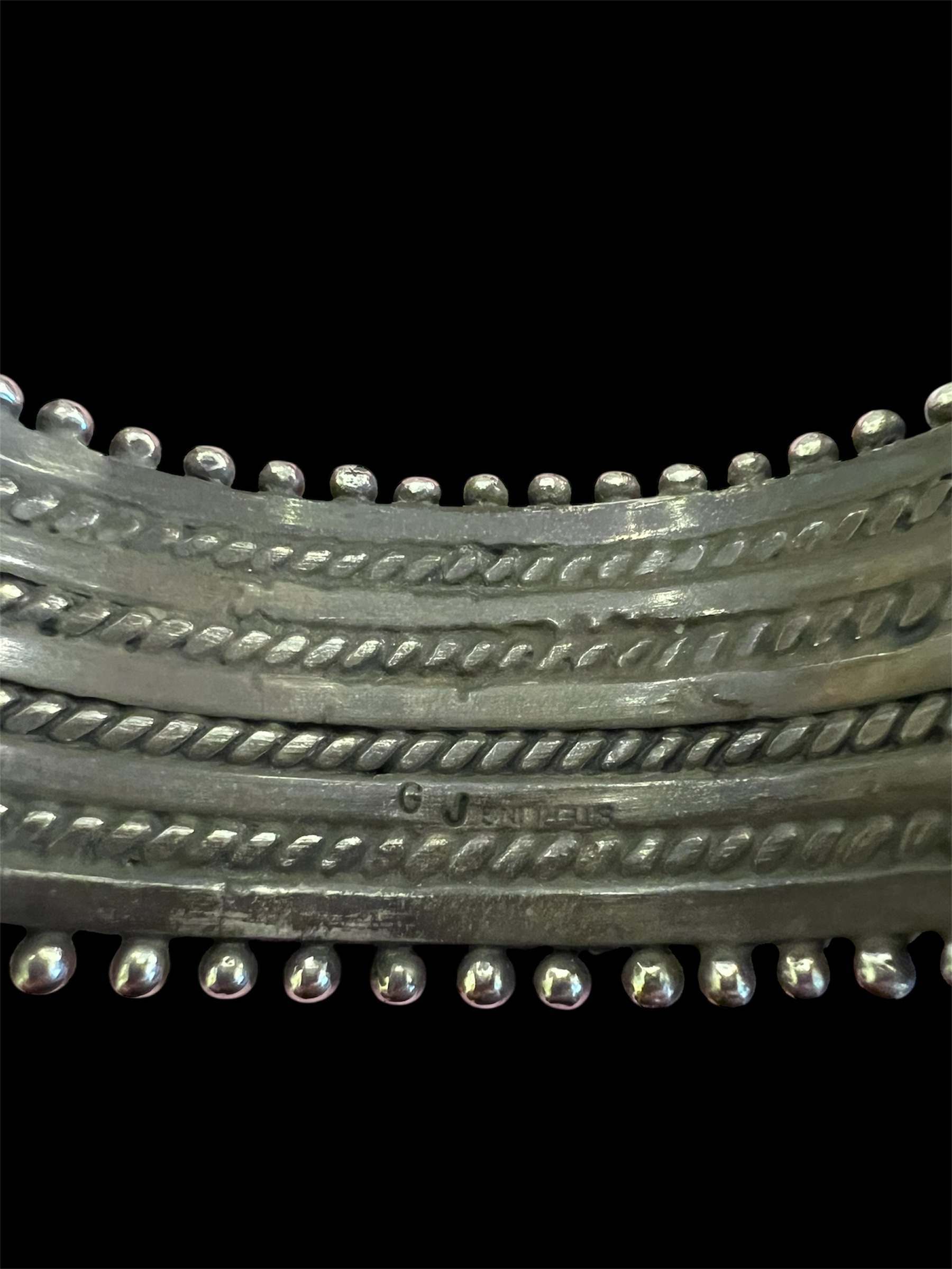 Vintage Zuni Petit Point Turquoise Cuff, sterling silver and Sleeping Beauty turquoise, signed GJ. 2 7/8″ wide x 1 7/8″.
